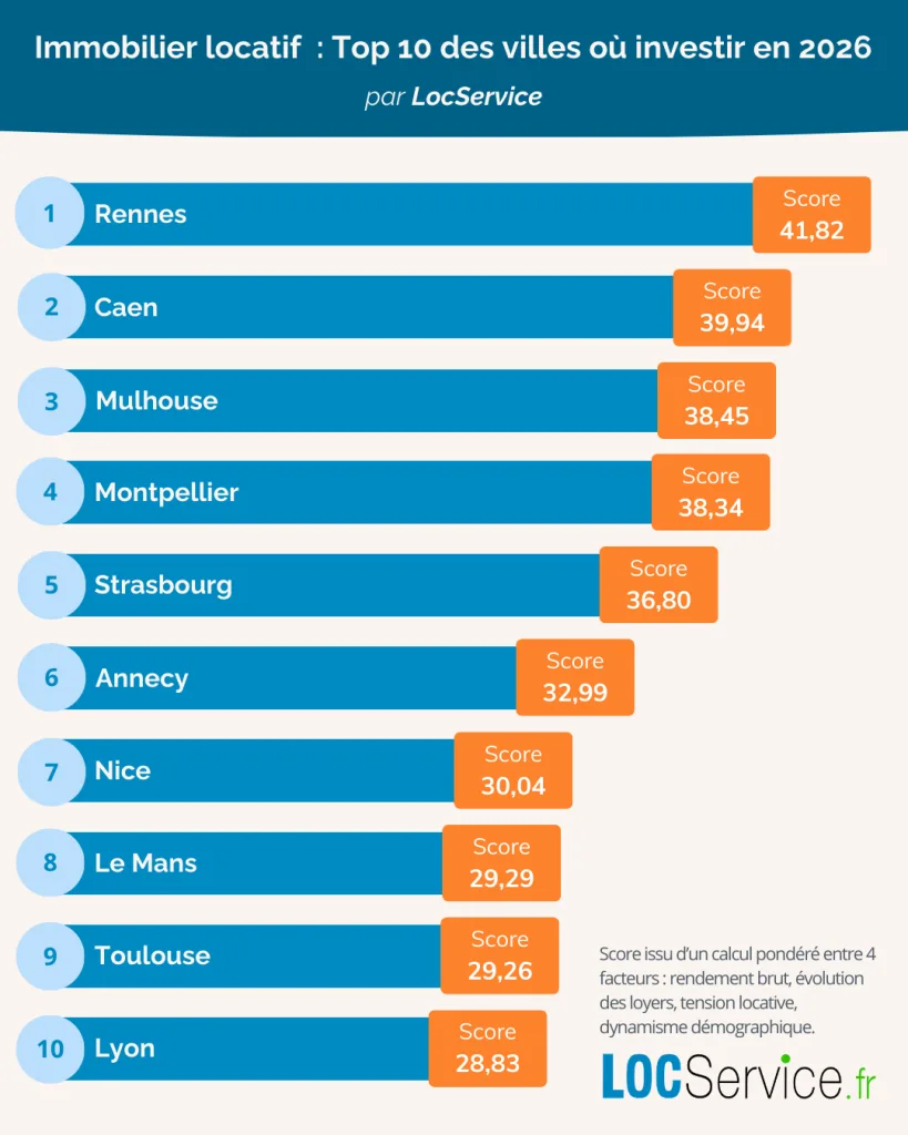 À l’approche du MIPIM 2026 — le plus grand salon mondial de l’immobilier professionnel, qui se tient chaque année à CannesLocService publie une étude exclusive portant sur 40 villes françaises de plus de 100 000 habitants afin d’identifier les marchés offrant le meilleur équilibre entre performance locative et sécurité.