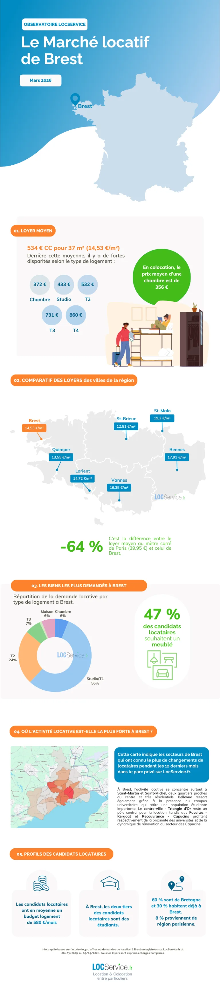 À l’occasion du salon Viving Habitat et Immobilier de Brest, qui se tiendra du 13 au 16 mars à Brest Expo, LocService.fr, spécialiste de la location entre particuliers, dévoile les résultats d’une étude menée sur le marché locatif brestois.