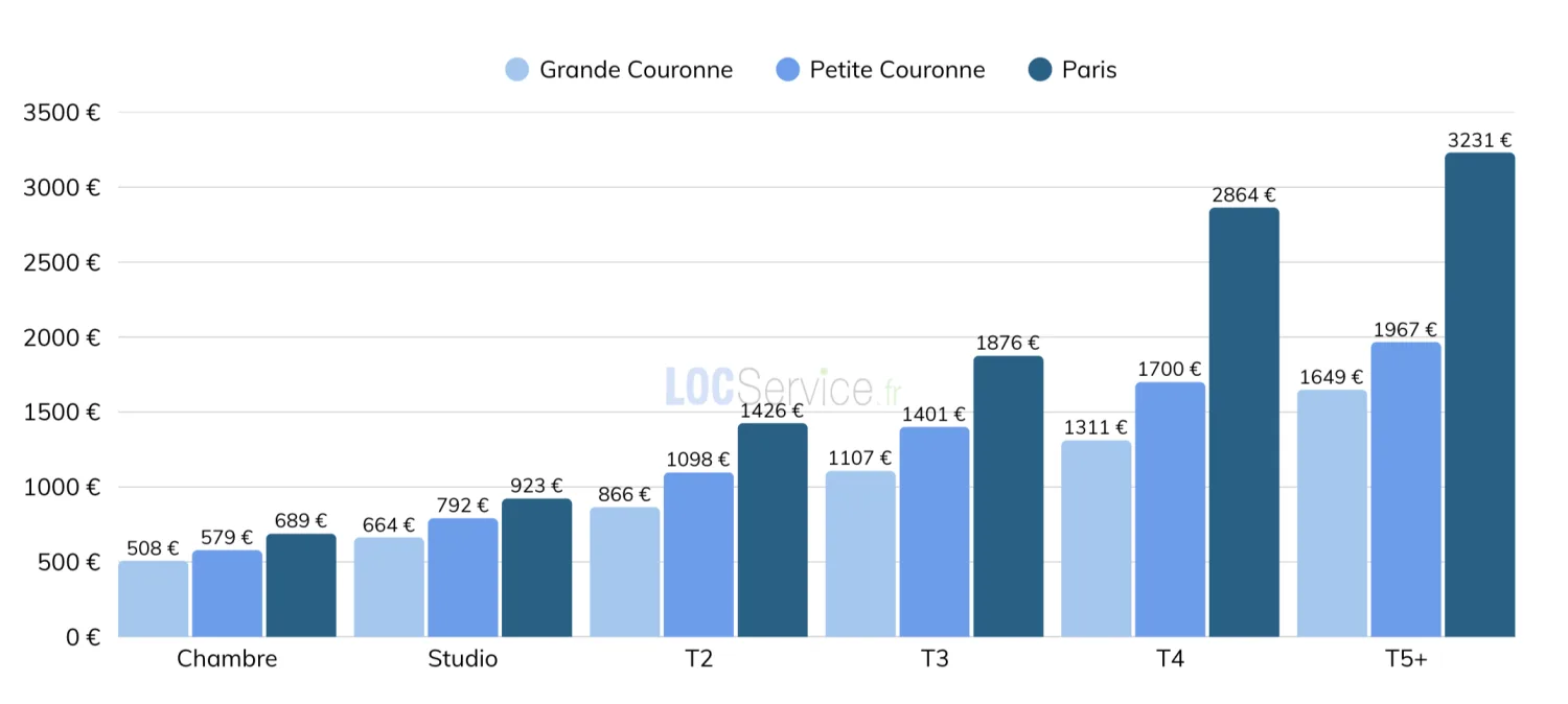 En Île-de-France, le loyer moyen atteint 983 € et 26,4 €/m² (+3,9 %). Les disparités restent fortes entre territoires :