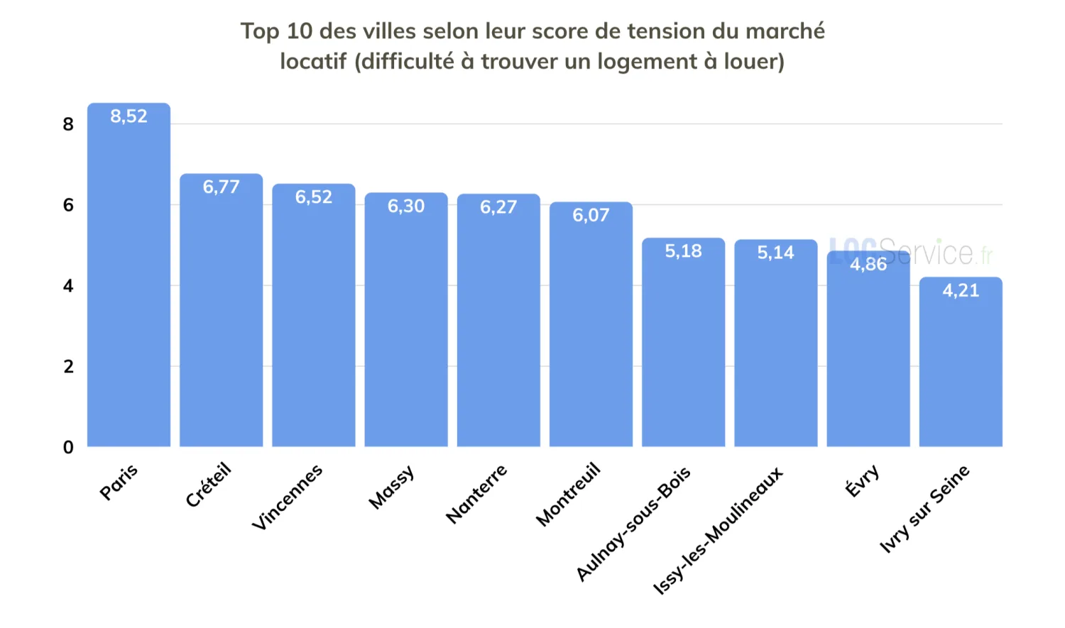 LocService.fr classe les 10 villes d’Île-de-France les plus tendues, c’est-à-dire celles où le rapport candidats/offres de location est le plus élevé. En tête : Paris, Créteil et Vincennes, avec une tension locative en forte hausse.