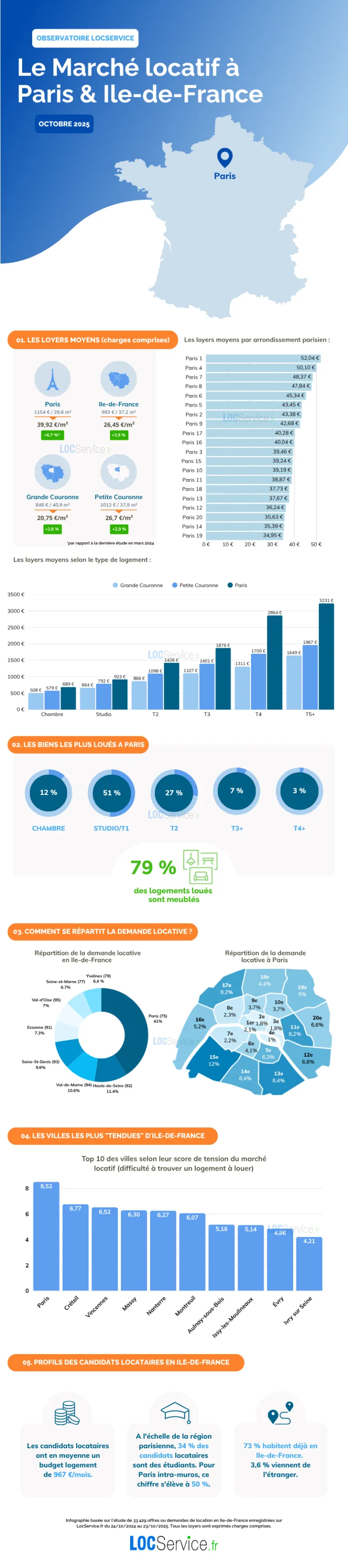 Ivan Thiébault, data analyst chez LocService.fr, conclut : “Comme nous l’avions prévu, le marché locatif francilien continue de se tendre. Cette tension du marché tire les loyers à la hausse, en moyenne, plus vite que sur le reste de la France. Les locataires doivent accepter des surfaces plus petites ou s’éloigner du centre, tandis que les propriétaires reçoivent parfois plusieurs centaines de candidatures. LocService.fr leur permet de préserver leur tranquillité en inversant la prise de contact : ce sont eux qui choisissent d’abord avec quels candidats ils souhaitent échanger.”