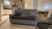 Et aussi d'une cuisine intégrée, équipée de réfrigérateur, plaque de cuisson vitro ou induction, micro onde grill. Toute la vaisselle, casseroles, plats,,, est fournie