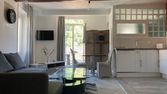 Cuisine équipée avec Four, Four micro ondes, plaque, frigo et lave linge.