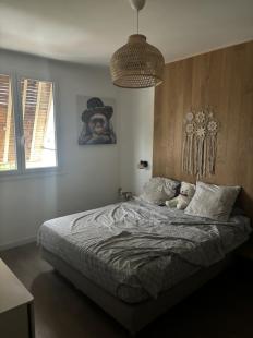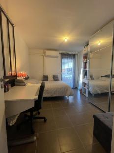 Chambre de 12 m² avec un lit double, un bureau, au calme et un très grand placard dressing et des étagères de rangement