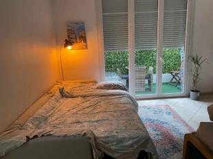 Grande chambre donnant sur petite rue très calme. Grande fenêtre. Lit double. Beaucoup de rangements. La Tv est dans le salon ...
