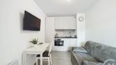 Mandelieu secteur Capitou, appartement type deux pièces meublé en étage élevé comprenant entrée, séjour avec cuisine et balcon, chambre avec placard, une salle d'eau et WC. Climatisé. Cave.