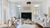Located in a historic Belle Époque palace built in the early 1900s and classified as a historical monument, « Le Majestic », this sumptuous 175 m² furnished apartment, situated on the top floor, stands out for its generous proportions and light-filled living room with an open-plan kitchen. The space opens onto a covered terrace offering breathtaking views of the city and the sea.