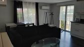Elle est composée au rez de chaussée d'un grand garage et d'une entrée donnant accès au premier étage ou se trouvent une salle de bain avec w-c , une grande cuisine ouverte sur un spacieux salon avec cheminée et au deuxième étage deux chambres.