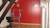 1ère chambre disponible : lit double 140x200 (alèse + couette + oreillers), un chevet avec lampe, bureau avec chaise, grande armoire, petit dressing, luminaire sur pied. La chambre dispose d'une terrasse privative.