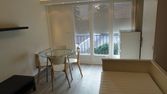 Meublé avec goût, ce studio dispose d'un lit mezzanine, d'un bureau, d'un fauteuil de bureau, d'une table et d'un canapé convertible. La cuisine est aménagée avec des plaques à induction, un réfrigérateur et un micro-ondes.