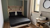 Le mobilier et l'électroménager sont neufs et de qualité : meubles de cuisine, salon, canapé, table basse, chambre et salle de bain, réfrigérateur, plaque vitro céramique, four micro-onde, hotte, Lave-linge.