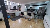 Cuisine américaine toute équipée de 10m2 (Four, frigo congélateur, plaques induction, lave-vaisselle, casserole et vaisselle, une dizaine de placards de rangement…).