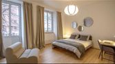 Chambre lumineux dans un logement de 50 m² à Strasbourg, cadre agréable avec un jardin. 461 € CC mensuels.