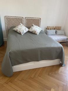 La chambre se trouve à côté de la cuisine et est assez spacieuse. Le mobilier ne va pas rester sauf le matelas (140 x 200), les ...