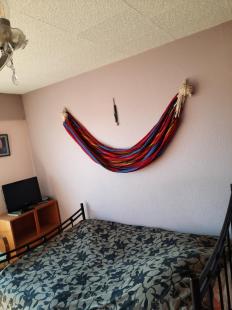 La chambre est composée d'un grand lit double de 140x190, d'une commode, de 2 armoires, d'un bureau avec un lampe de bureau et une ...