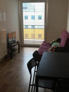 IA louer une chambre comprenant un lit divan de chez Ikea, et des rangements La vue est dégagé sur un petit parc , c'est lumineux ...