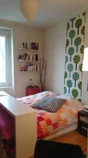Grande chambre de 17 m2 donnant accés à un grand balcon. Vue dégagée et arborée. Ma coloc occupant encore les lieux, je ne mettrai ...