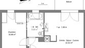 L'appartement se compose : d'une entrée avec coin kitchenette aménagée et semi équipée (plaques de cuisson), d'un salon, d'une salle d'eau avec WC et d'une chambre.