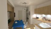 Meublée et équipée, elle comporte un lit simple, une douche, une armoire-penderie, armoire de toilette, un petit espace bureau, étagères, une kitchenette avec réfrigérateur, plaque à induction, micro-ondes. Vaisselle à disposition.