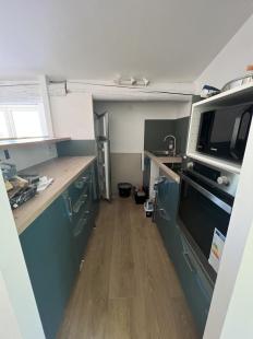 Chambre équipée de 12m2 avec lit 2 places bures et rangement, mais un bar d'ambiance en bas de l'immeuble engendre du bruit, je ...