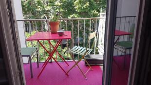 Chambre de 10m2 comprenant un lit en 160cm, grande armoire, coiffeuse, donnant sur un grand balcon avec une table pour dejeuner ...
