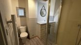 Il se compose d'une entrée, d'une spacieuse salle de bain avec vasque, baignoire, WC et emplacement pour la machine à laver;
