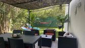 ° Grande terrasse abritée de 40 m², avec table de ferme, salon magnifique fer forgé,
