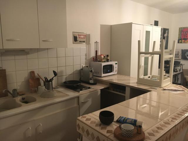 studio meublé RDC entièrement refait à neuf sol pvc et plafond. équipé d'un espace cuisine avec meuble évier, meuble haut et bas pour rangement, chauffage clim réversible chaud froid, volet roulant ...