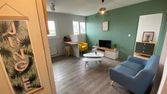 🏡 Salon (canapé, table, tv...) + cuisine équipée (four, frigo, machine à laver) + 2 sdb + 1 wc + balcon