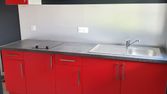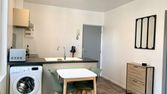 Appartement lumineux avec cuisine équipée (hotte, plaque cuisson, four) et salle de bain avec wc.