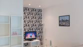A l'étage: une chambre et salle de douche, grand placard penderie, volet électrique. Radiateur électrique à inertie.