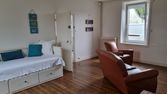 Chambre de 10m2 environ avec chauffage électrique, un lit simple (oreiller et couette fournie), lampe de chevet et petite table d'appoint.Chambre lumineuse, fenetre avec volet roulant manuel.Salle de bains:toilettes a proximité de la chambre.