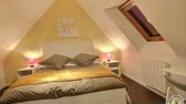Chambre à l'étage d'environ 12 m2 proche salle d'eau. Lit double . espace dressing et espace bureau. Quartier calme à 6 km de la mer (Binic/Etables) et 25 km de St Brieuc (Accès Tibus facile)