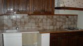 une salle à manger séparée avec un coin cuisine équipée, un cellier de rangement