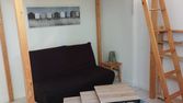 Studio avec Cuisine équipée (plaques vitro, four), machine à laver, salle de bains avec douche et wc. Chambr…