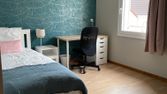 Chambre meublée (lit 140x200, bureau, armoire) avec prestation de ménage pour les espaces communs dans un appartement de 95m2 entièrement refait à neuf.