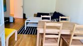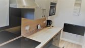 - cuisine-salle à manger équipée (grand réfrigérateur-congélateur, plaques, four, micro-ondes, bouilloire, Nespresso, table et chaises)