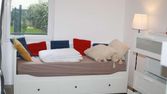 5 chambres aux totales dont 2 grandes (possible pour 2 personnes). 12 m² chacune et 20 m² pour les grandes.