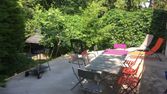 DANS PAVILLON individuel (180 m²) avec grand jardin arboré avec possibilités de permaculture (1.000 m²) : entrée, séjour avec cuisine meublée et équipée, 2 salles d'eau, 2 w.c., buanderie, terrasse.