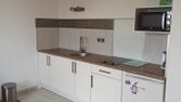 La studette est constituée d'une pièce de vie ouvrant sur un grand balcon exposé sud-est, sans aucun vis-à-vis sur le jardin de l'immeuble, d'un lit en mezzanine, d'un coin cuisine équipée, d'un canapé, d'une armoire et d'un bureau.