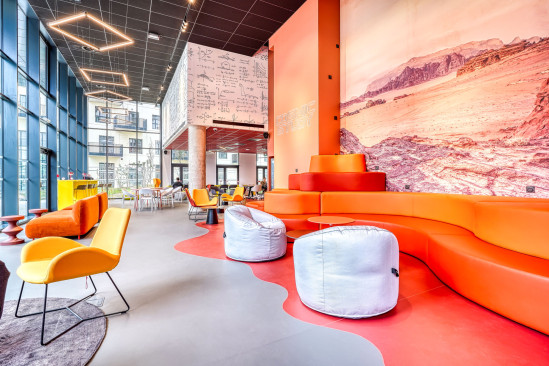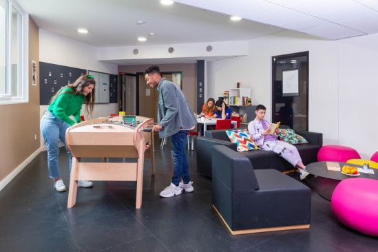 Ecla, c’est aussi 3000 m² d’espaces communs dédiés aux échanges et aux rencontres, avec des espaces de co-working, une cuisine collaborative, un sports bar, une salle de e-sport et e-game, un studio de musique, salles de cinéma...