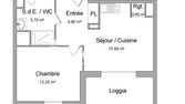PONT DE L'ARCHE centre ville - L'étude vous propose à la location un appartement T2 de 46,53m² dans résidence avec ascenseur, comprenant une entrée, salle séjour avec cuisine ouverte, une chambre, salle de bain, et wc