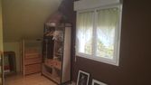 chambre n°2, mansardée à l'étage avec deux fenêtres 14.22 m2 (16.84 m2 au sol). meuble de rangements , lit double, literie neuve drap fournis avec serviette de bain . salle de bain et wc réservés au même niveau aux deux chambres en location (8.50 m2) .