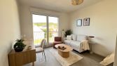 L'appartement est composé d'une entrée direct dans le salon avec une cuisine ouverte et l'accès au balcon, u…