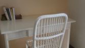 Aménagement : Lit de 140, couette et oreiller ; Armoire-penderie, bureau, chaise et fauteuil. Sanitaires : salle de douche, lavabo, rangements, wc séparé.
