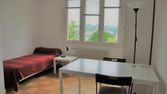 Loue STUDIO meublé, ADSL WIFI, dans une maison entièrement rénovée dans le quartier prisé, résidentiel, calme, dit des Musiciens situé entre Hôpital et à 5 mn à pied du centre-ville (parking, calme, vue dégagée) :rnrn- Cuisine : four multifonction, plaque induction, frigidaire/fraiseur, bouilloire, vaisselle…, table et chaises, placards de rangement - congélateur rdcrn- Chambre : lit EPEDA LUXE (90 x 190), armoire à glace, bureau, chaises (vue sur vallon)rn- SDB : douche carrelée (100x80), WCrnrn+ BUANDERIE – LOCAL VELO – TERRASSE – JARDINrnrnMaison entièrement rénovée : ADSL WIFI, VMC, normes NF, pas de plomb, chauffage au gaz, compteurs individuels eau, électricité et gaz - place de parking aisé et gratuit, vue sur vallon, calme.rnrnPrix 395€ HC + Frais d'ADSL WIFI fibre 45€ et entretien chaudière GAZ (jardin commun ici offert), inclus ! -