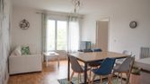 Rez de jardin avec possibilité de manger dehors et chaises longues.