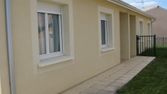 Nous vous proposons cette villa de type 3, composée d'une entrée, d'un vaste séjour avec son espace cuisine équipé (évier inox, plaque 4 feux, hotte, meubles hauts et bas),d'un cellier de deux chambres avec placard, d'une salle de bains aménagée avec WC et d'un WC séparé.