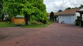 portail. Une grande terrasse carrelée, un abri de jardin, une corde à linge.