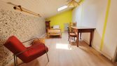 La chambre est spacieuse, lumineuse, meublée avec un lit de 140 par 190. Accès à l'espace cuisine avec tout l…
